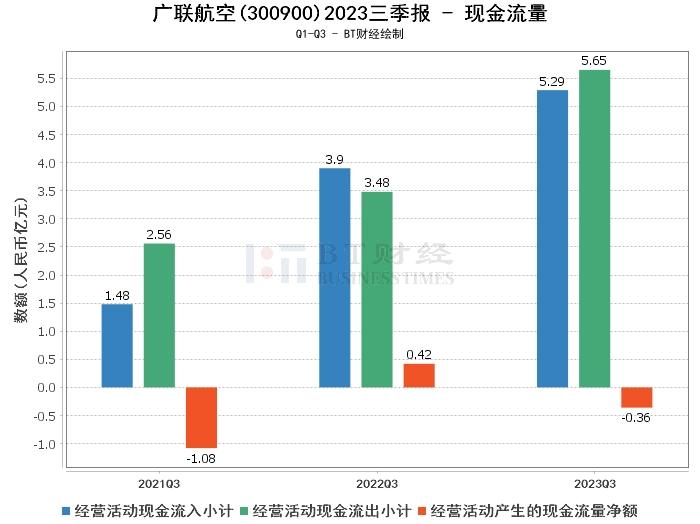 再来看看广联航空的现金流量情况。根据2023年三季报,广联航空的经营活动产生的现金流量净额为-3603.2万元,相比上年同期的4245.63万元,现金流量净额转为负。这主要是由于本期订单持续增加,为保证交付周期增加原材料备库支出及工资费薪酬较上年同期增加所致。