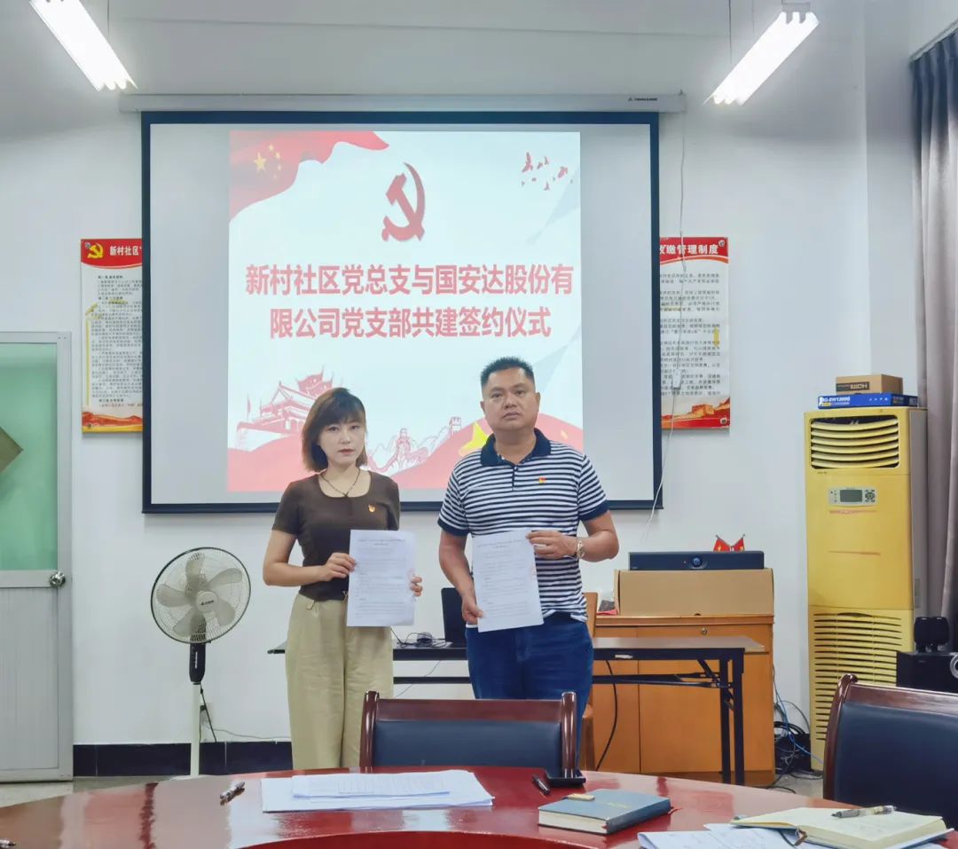 为加强基层党建工作,提升社区居民的消防安全意识,增强社区抗灾减灾能力,6月6日,国安达股份有限公司党支部与后溪镇新村社区党总支签订共建协议,建立共建关系,进一步推动政企融合发展、增进民生福祉。