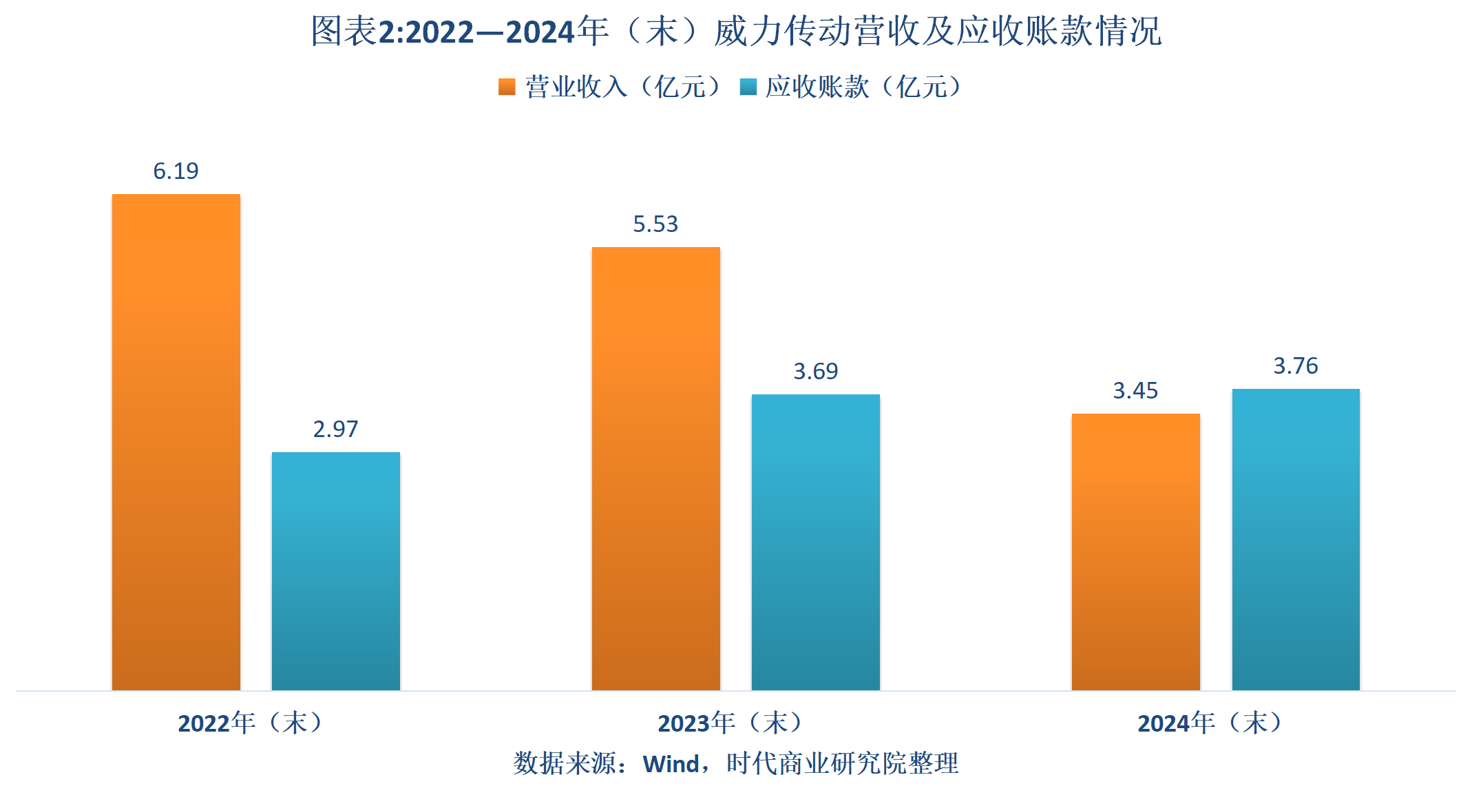 2022—2024年末,威力传动的应收账款分别为2.97亿元、3.69亿元、3.76亿元,占营收的比例分别为48.05%、66.71%、108.83%,2024年末其应收账款占营收的比例已突破100%。