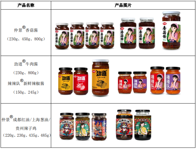 官方资料显示,仲景食品主要产品为仲景香菇酱、劲道牛肉酱、辣辣队新鲜辣酱、仲景调味配料和调味油等,公司生产总部位于中国香菇之乡——河南省南阳市西峡县。