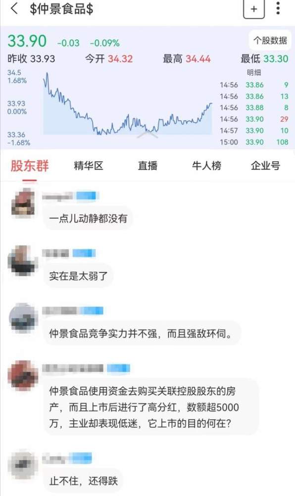在尺度股东群,有投资者表示,“仲景食品竞争实力并不强,而且强敌环伺”。