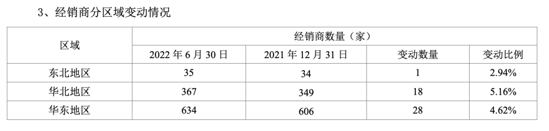 除了继续推进线下渠道的下沉和深耕,不断增加有效终端覆盖。仲景食品同时也在积极发展线上、餐饮、到店到家、新零售等渠道,优化全渠道布局。截止2022年6月30日,公司共有经销商1762家,相比2021年底增加119家,增长7.24%。且所有区域都出现净增长。