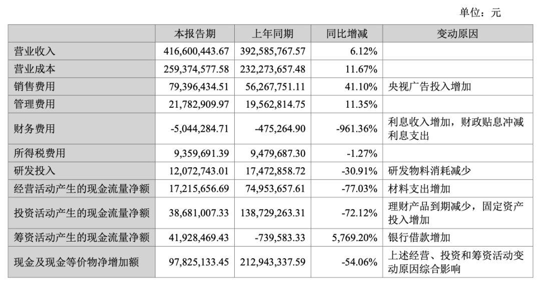 因此,仲景食品今年也意识到了提价的不可行性,不再采取这种“伤敌一千、自损八百”的策略,但净利润的下降也仍在鞭策着仲景食品保持警戒意识。在销售良好的情况下,仲景食品上半年利润并未实现同比增长,除了材料成本上涨,广告费用增加也是主要原因。