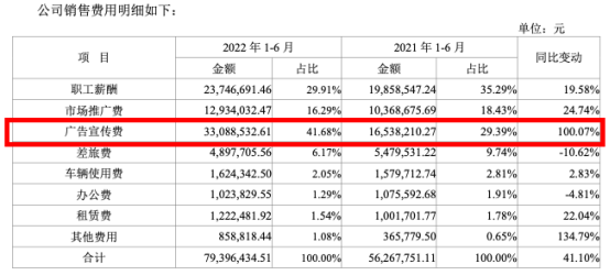 2022年半年报显示,仲景食品的广告宣传费用在销售费用中以41.68%的占比跃升至第一位。