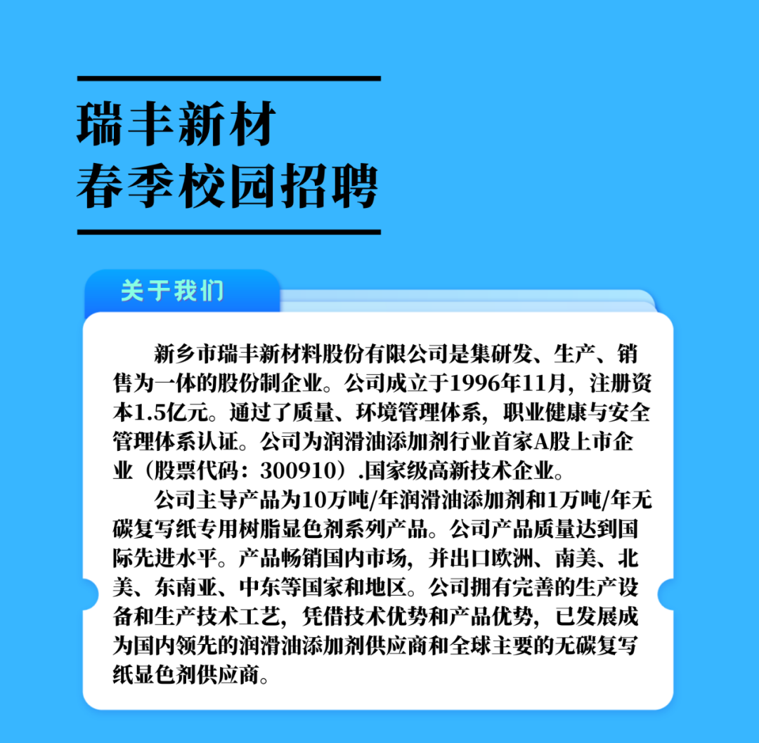瑞丰新材2022春季招聘