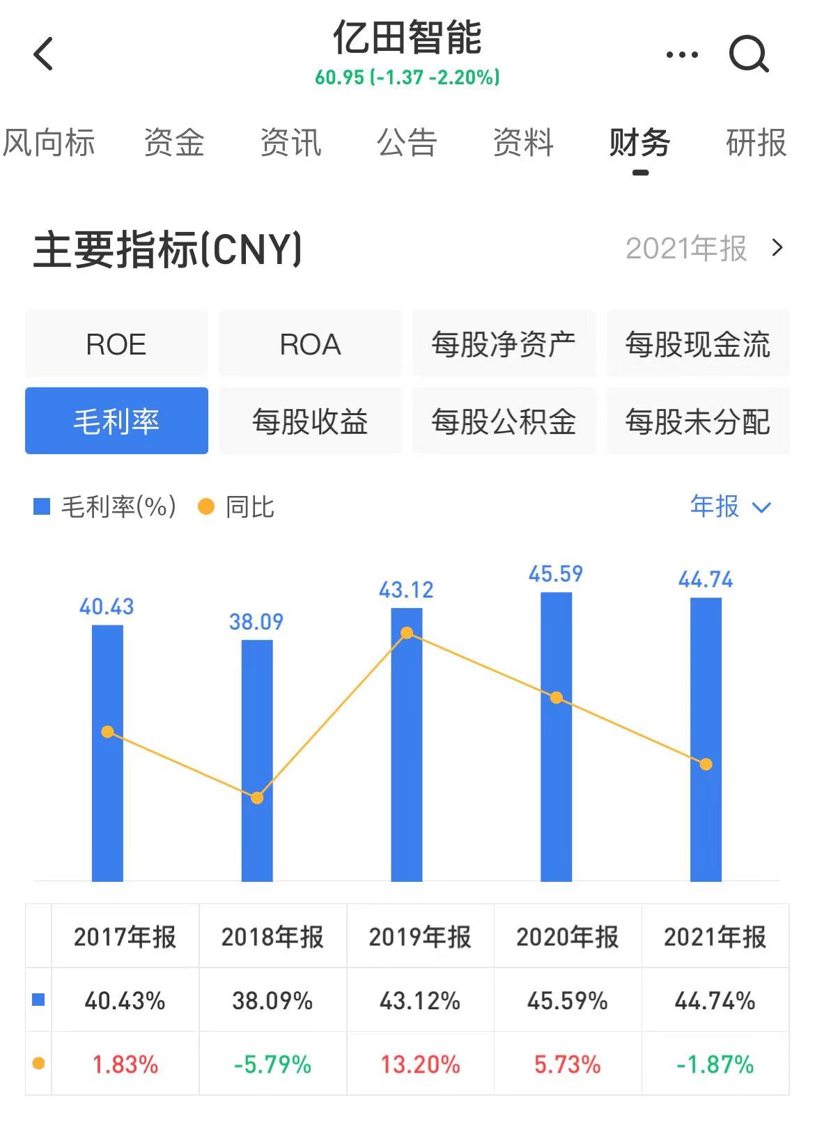 根据公告,公司实现营业收入12.3亿元,同比增长71.66%;归属于上市公司股东的净利润2.1亿元,同比增长45.76%。而毛利率方面,则由2020年的45.59%降至2021年的44.74%。