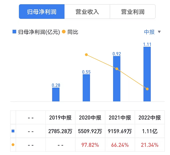 净利润方面,拉长时间线来看,2020年上半年至2022年上半年,亿田智能净利润分别为5509.92万元、9159.69万元、1.11亿元,同比增长分别为97.82%、66.24%、21.34%,增速逐年下降。