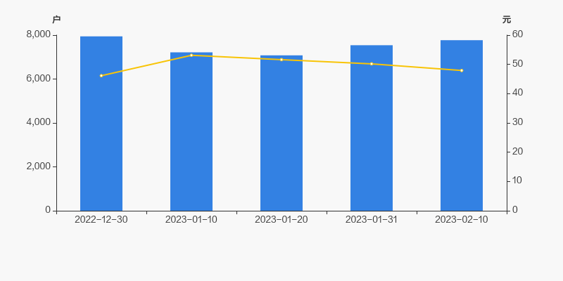 2022年12月30日至今,公司股东户数有所下降,区间跌幅为2.20%。2022年12月30日至2023年2月10日区间股价上涨3.86%。