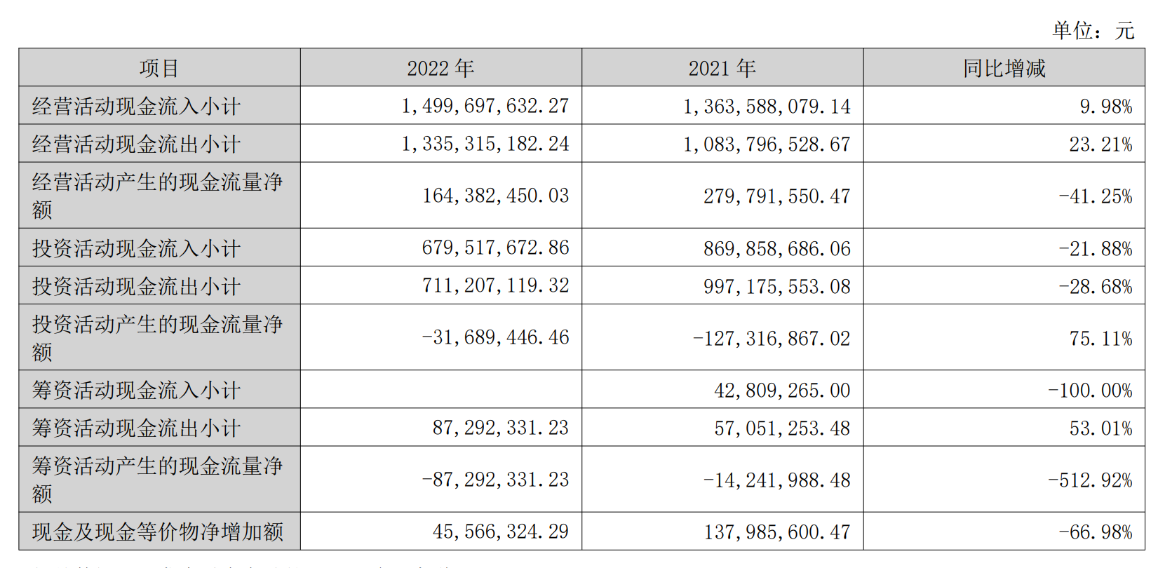 2022年,亿田智能经营活动产生现金流量净额为1.64亿元,比上年同期减少