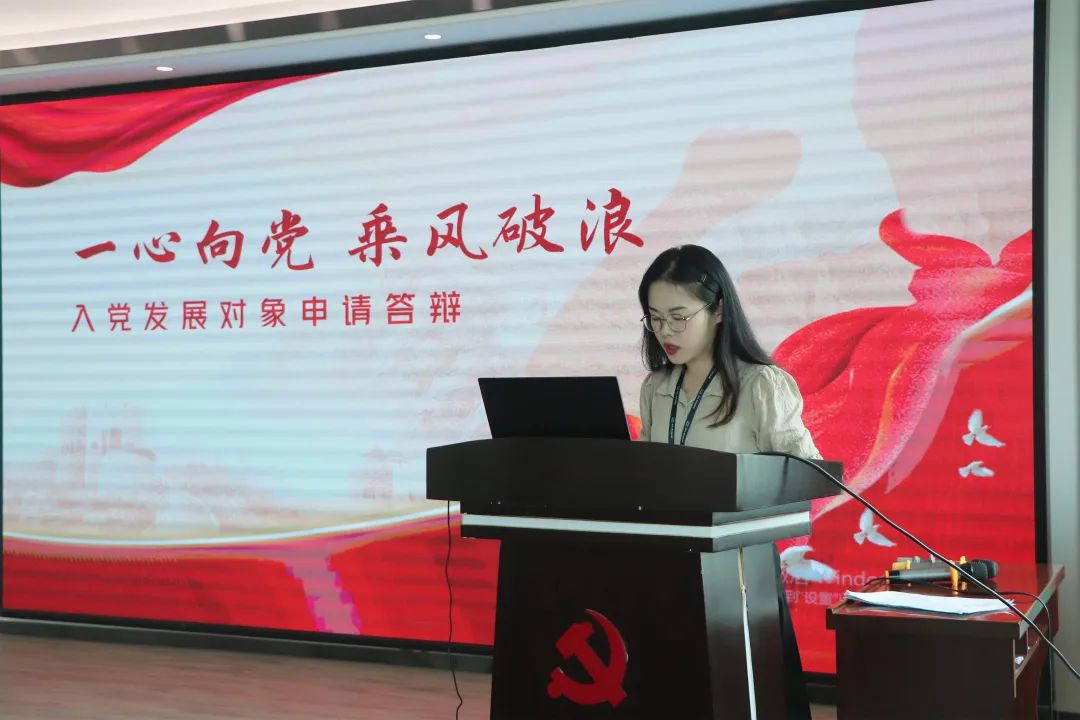 本次会议发展对象竺露铭同志依次从思想、学习、工作情况等方面进行了思想汇报,同时结合自己的实际情况表达了自己加入中国共产党的决心和强烈愿望,并就正式党员的提问进行发表意见。