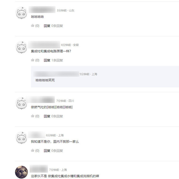看到这则回应,网友们笑开了花。有人表示,集成灶和集成电路原理一样?还有网友称,我知道不是你,国内不就那一家吗?另有网友科普,这家伙不是做集成灶、集成水槽和集成洗碗机的吗?
