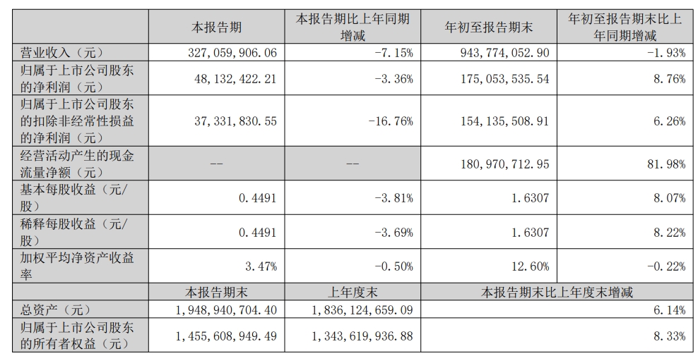 2023年第三季度,亿田智能营业收入3.27亿元,同比降7.15%;归属于上市公司股东的净利润4813.24万元,同比降3.36%。