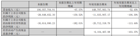 亿田智能(300911.SZ)昨日盘后披露的2024年第三季度报告显示,公司第三季度实现营业收入1.06亿元,同比下降67.57%;归属于上市公司股东的净利润-2864.87万元,同比下降159.52%,去年同期为4813.24万元;归属于上市公司股东的扣除非经常性损益的净利润-3061.50万元,同比下降182.01%。