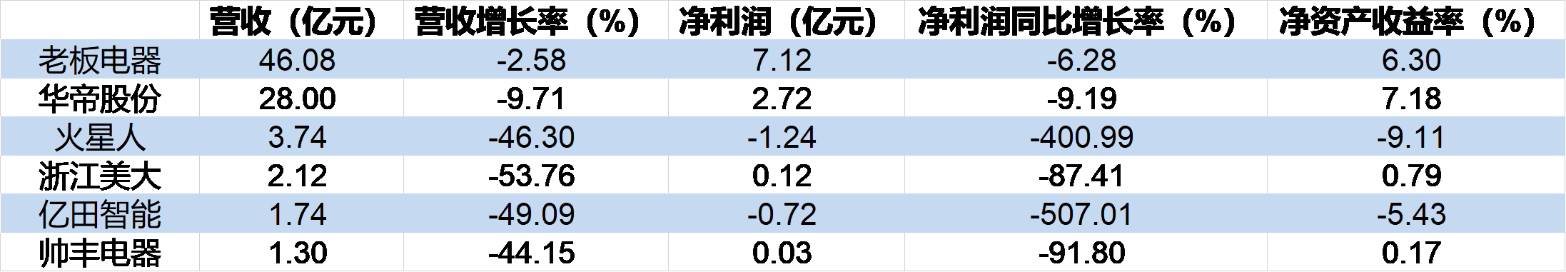 今年上半年,A股厨电上市企业均出现业绩走低现象。