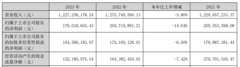 2023年,亿田智能营业收入同比下降3.80%,归属于上市公司股东的净利润同比下降14.64%,归属于上市公司股东的扣除非经常性损益的净利润同比下降6.00%。