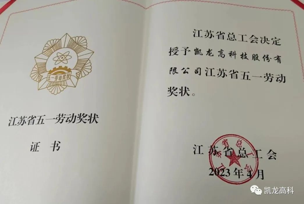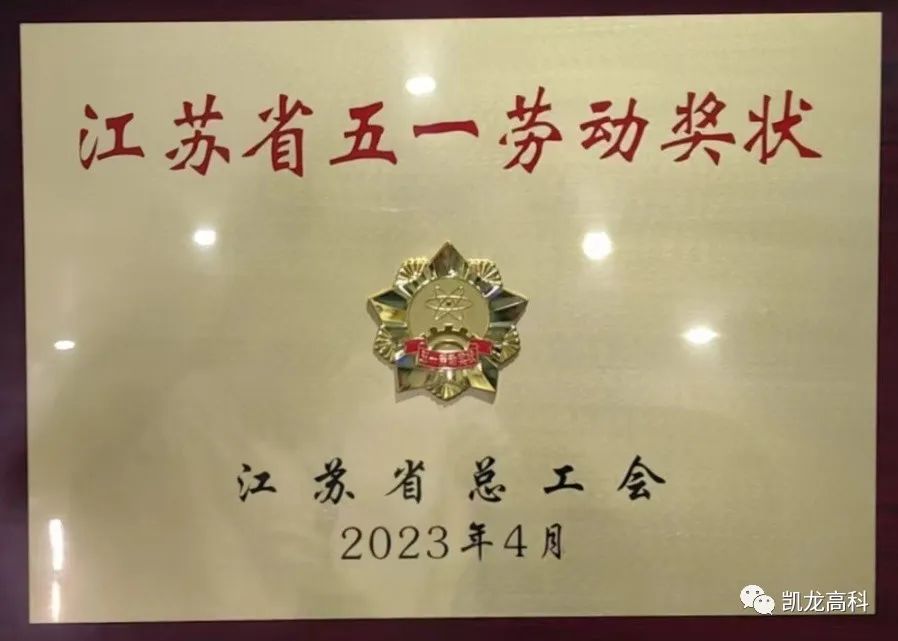 克勤为美德,劳动最光荣。五一前夕,凯龙高科技股份有限公司荣获江苏省总工会颁发的“五一劳动奖状”。