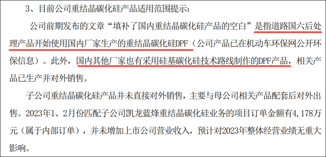 今年2月,凯龙高科在公众号上发布文章,列出七项重结晶碳化硅的专利,称“公司技术填补了国内重结晶碳化硅产品的空白”、“有利于公司将此技术向半导体、新能源汽车、5G 通讯等领域延伸”。