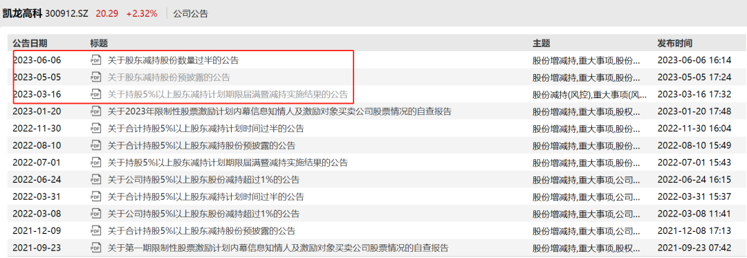 凯龙高科“信息披露失误”,除了在客观上为大股东(主要是机构)减持提供便利,将部分散户罚站到小山顶以外,也为自己在媒体面前赢得了一个“吹牛”的名声(中新经纬、每日经济新闻)。