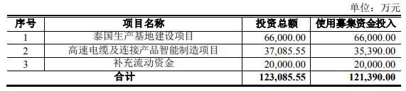 兆龙互连昨晚发布2023年度向特定对象发行股票预案。本次向特定对象发行股票拟募集资金总额不超过121,390.00万元(含本数),扣除发行费用后将全部用于泰国生产基地建设项目、高速电缆及连接产品智能制造项目、补充流动资金。