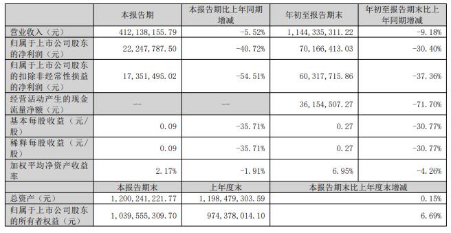 今年前三季度,兆龙互连实现营业收入11.44亿元,同比下滑9.18%;归属于上市公司股东的净利润7016.64万元,同比下滑30.40%;归属于上市公司股东的扣除非经常性损益的净利润6031.77万元,同比下滑37.36%;经营活动产生的现金流量净额3615.45万元,同比下滑71.70%。