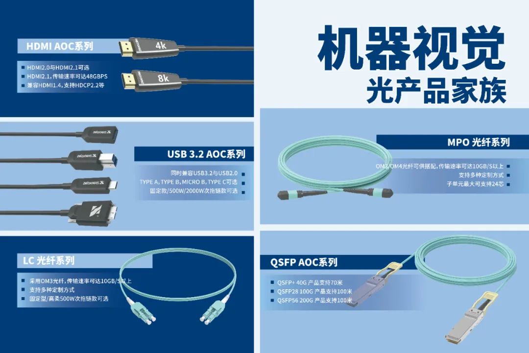 应用于机器视觉的HDMI AOC,USB3.2 AOC,MPO,LC,QSFP AOC等光产品方案