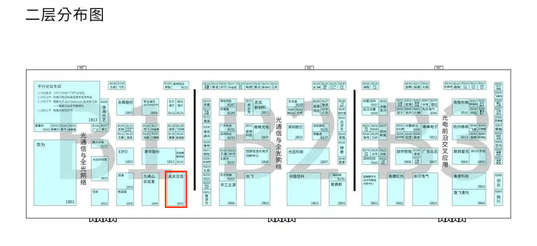 我们兆龙互连在”红色框位置"的”二楼B1展区1B05展位号“哦~