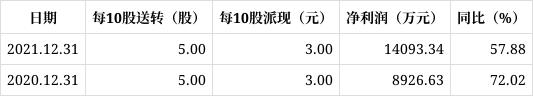 4月26日朗特智能发布2021年度分配预案,拟10转增5派3元(含税)。