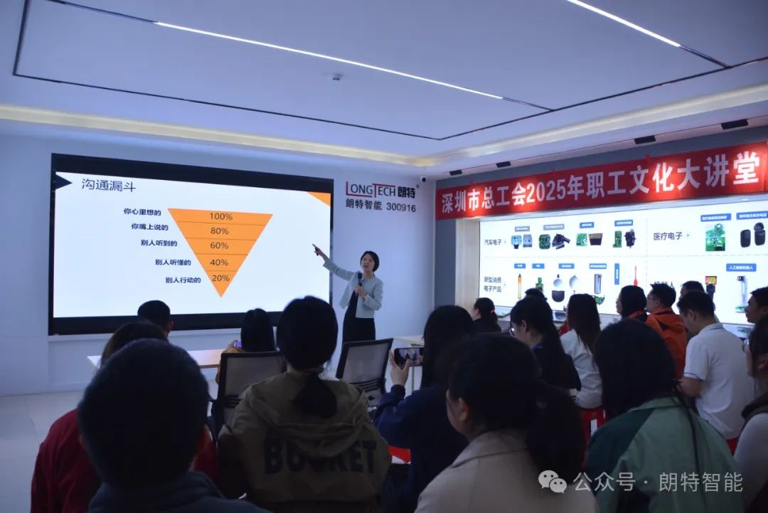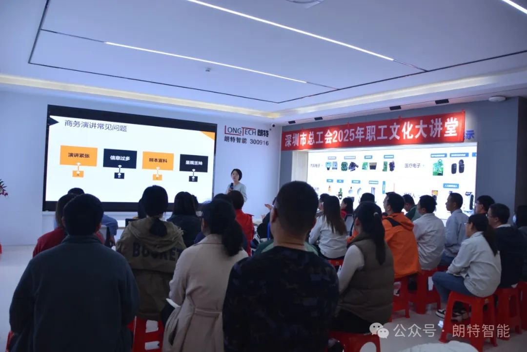为帮助职工掌握商务演讲基本技巧,提高PPT制作水平,更好地传递信息、展示成果、推动合作,3月19日,朗特智能在总部四楼多功能会议室举办了一场商务演讲与PPT制作培训。公司工会通过市总工会“职工文化大讲堂”公益培训平台,特邀ACI职业培训师纪菲进行了现场授课,吸引了公司领导、各部门文员、基层管理者及公司骨干等50余人参加。
