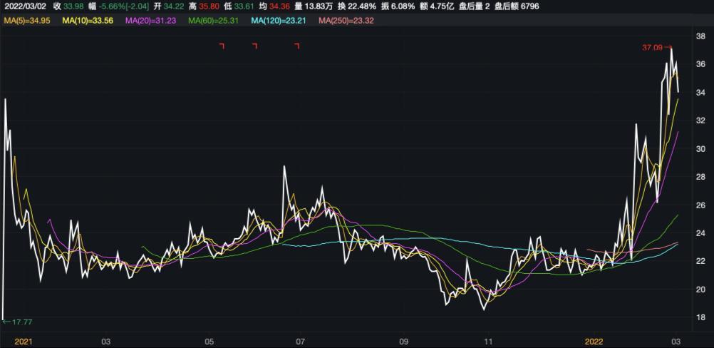 值得注意的是,南凌科技于2020年12月22日登陆创业板,上市以来该公司股价从发行价32.54元/股一路走低,2021年10月创下18.57元/股的低点。直到今年1月,其股价走势一直未有较大波动。