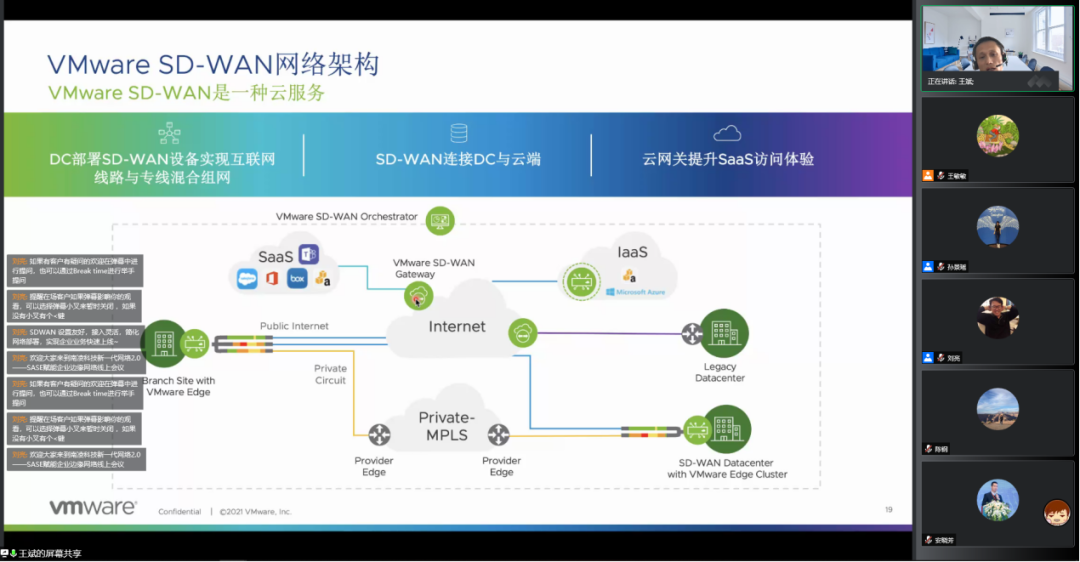 紧接着,VMware高级技术顾问王斌先生率先以“VMware SASE/SD-WAN赋能企业边缘网络”为主题,讲述了VMware SD-WAN整套生态系统和增值服务,如何为客户保持业务连续性与稳定性“保驾护航”。其演讲中多元化的应用场景和精彩的案例分享,让每一位与会者都受益匪浅。