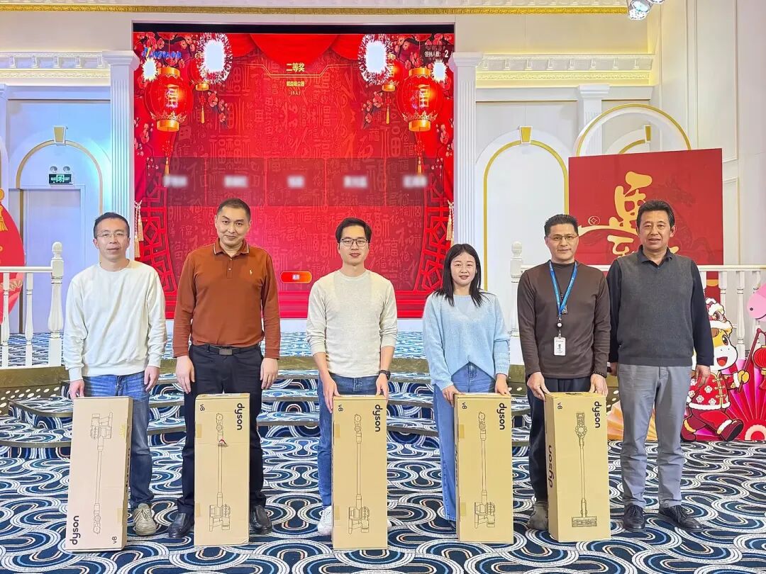 本次庆典准备了丰富多彩的抽奖环节,礼品涵盖苹果iPad、华为MatePad、JBL耳机以及戴森吸尘器等近百份丰厚好礼,承载着公司对员工一年来辛勤付出的真挚关怀。现场欢声不断,温情满溢,热烈气氛与真挚情感交融相映,共同为这场庆典增添了温暖而难忘的色彩。