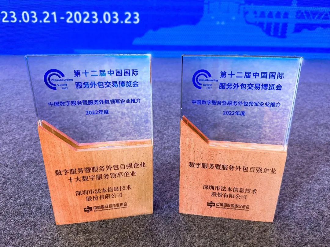 法本信息捷报频传,现场荣膺三项数字服务领域大奖:十大数字服务领军企业、十大服务外包扩就业领军企业、数字服务暨服务外包百强企业。