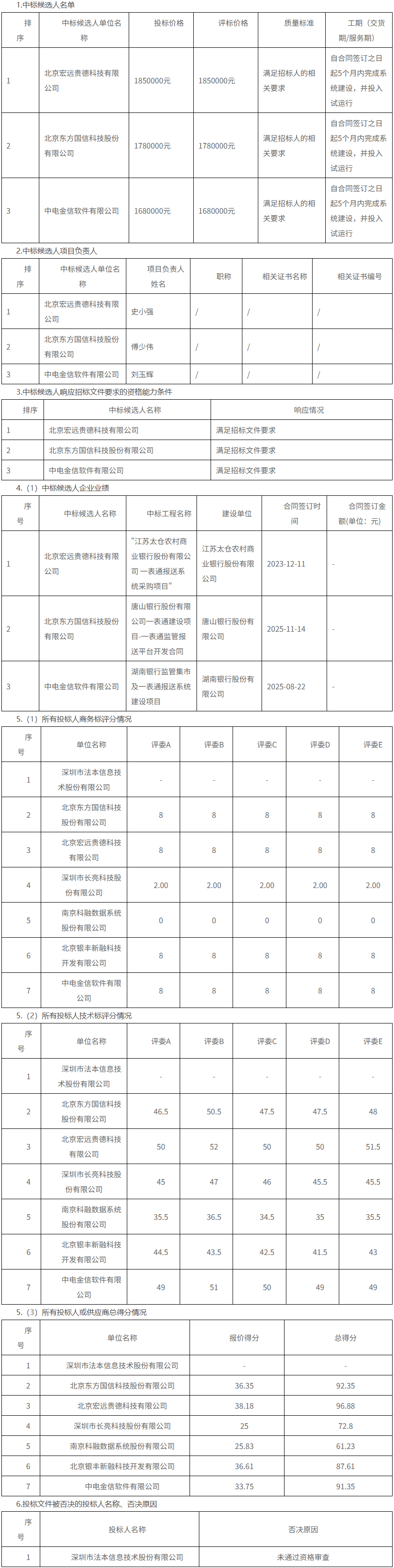 公示名称: 邯郸银行 监管报表一表通系统项目