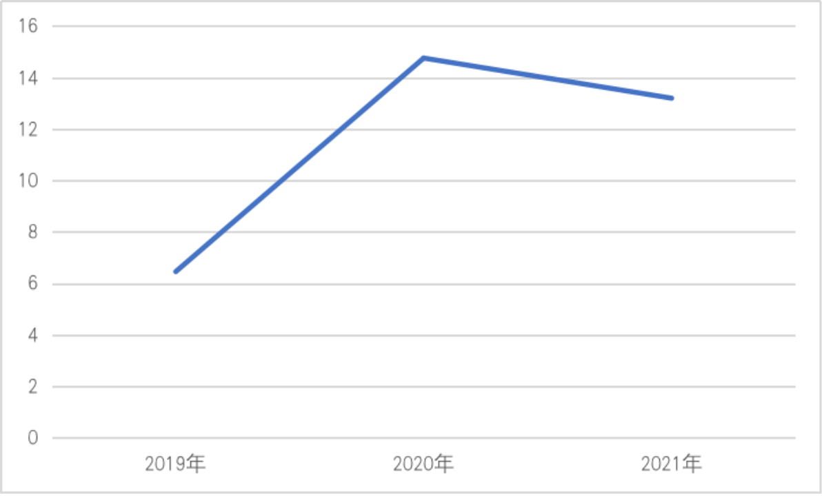 ——总资产规模增长受阻。如图1所示,2019-2021年,华安鑫创总资产规模分别为6.46亿元、14.76亿元、13.2亿元。2020年较2019年增长了128.48%,但2021年较2020年总资产规模却下降了10.57%,主要系本公司营业收入减少所致。