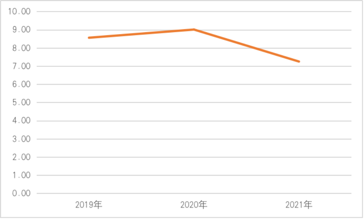 ——营业收入增长不稳定。如图2所示,2019-2021年华安鑫创营业收入额分别为8.56亿元、9.01亿元、7.25亿元。2020年较2019年上升了5.26%,2021年较2020年却下降了19.53%,主要系供货量产车型销量不及预期,而新接项目订单推迟放量,同时下半年受原材料价格上涨导致缺货的影响,出货量减少所致。
