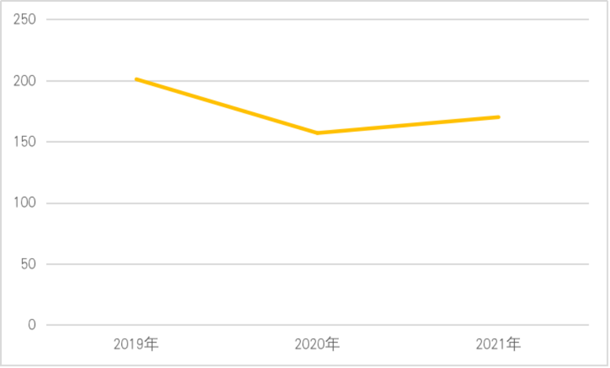 ——员工人数呈波动变化。如图3,2019-2021年,华安鑫创员工总人数分别为201人、157人及170人。2020年较2019年减少了21.89%,2021年较2020年员工人数又增加了8.28%,可见华安鑫创员工规模不稳定。
