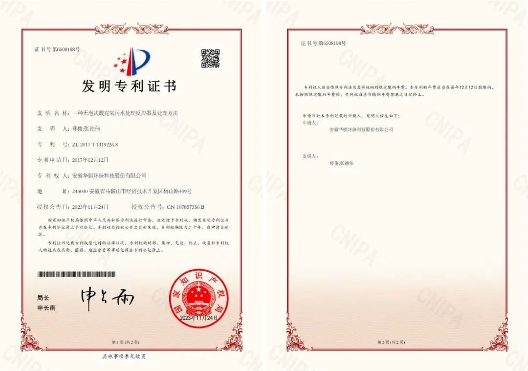 据国家知识产权局公告,安徽华骐环保科技股份有限公司取得一项名为“一种无泡式膜充氧污水处理反应器及处理方法”发明专利,授权公告号CN107857356B。