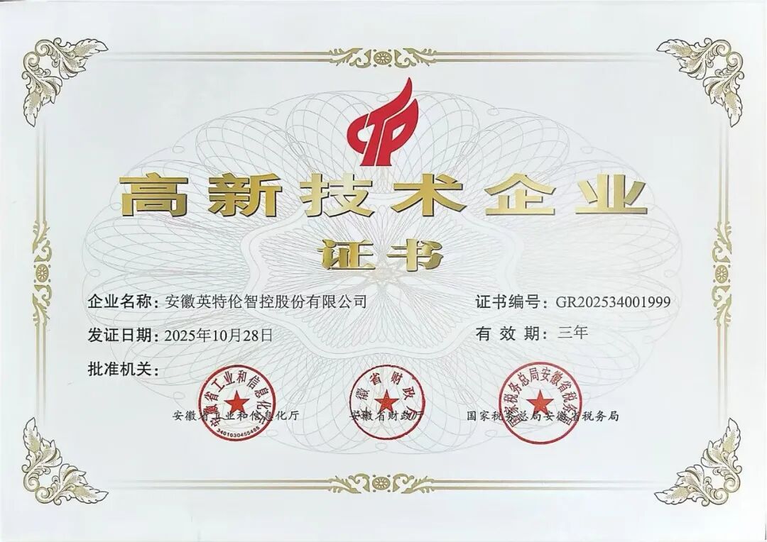 近日,安徽华骐环保科技股份有限公司旗下子公司安徽英特伦智控股份有限公司正式通过国家高新技术企业认定。该认定标志着英特伦智控在核心技术自主创新、科技成果转化及成长性等方面获得国家认可,将进一步促进其研发投入与技术升级,提升市场竞争力。
