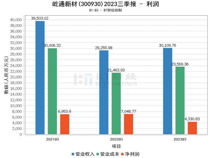 在利润方面,屹通新材2023年三季度的营业收入为3.01亿元,较上年同期的2.93亿元微增。营业利润为4812.88万元,较上年同期的8139.19万元大幅下滑。净利润为4330.83万元,较上年同期的7048.77万元也有所下滑。毛利率为21.72%,较上年同期的26.63%有所下降。净利率为14.38%,较上年同期的24.09%下降明显。