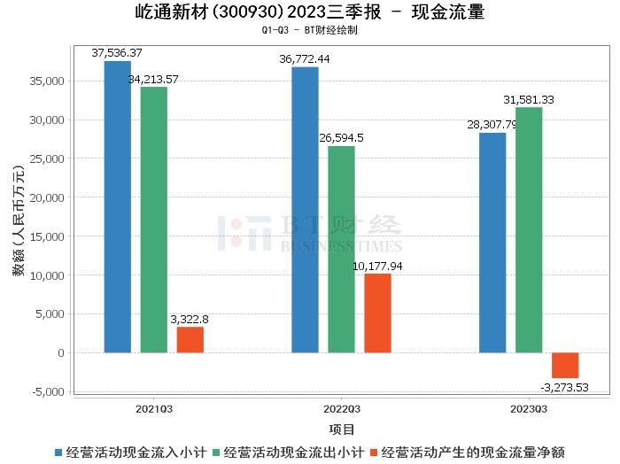 在现金流量方面,屹通新材2023年三季度的经营活动产生的现金流量净额为-3273.53万元,较上年同期的1.02亿元大幅下降。经营活动现金流入小计为2.83亿元,较上年同期的3.68亿元有所减少。经营活动现金流出小计为3.16亿元,较上年同期的2.66亿元有所增长。