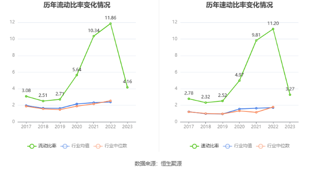2023年,公司流动比率为4.16,速动比率为3.27。