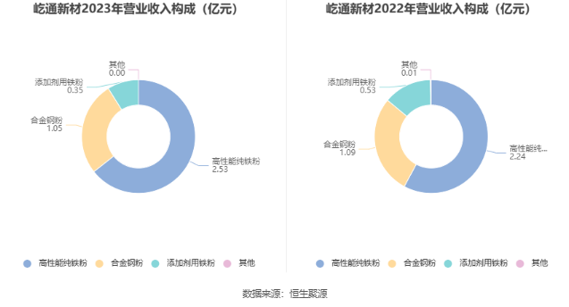 分产品看,高性能纯铁粉、合金钢粉、添加剂用铁粉2023年毛利率分别为19.99%、26.00%、21.73%。