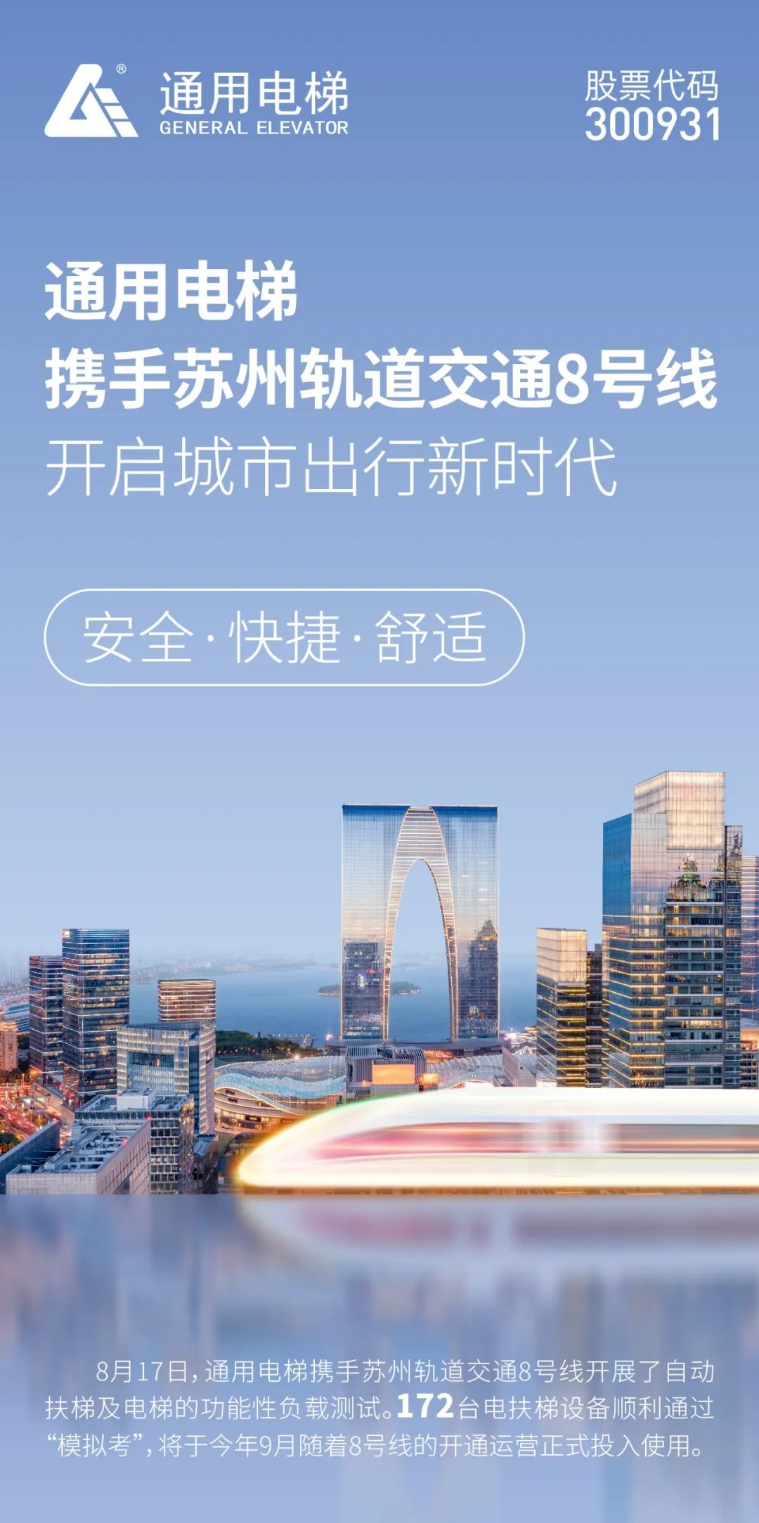 通用电梯携手苏州轨道交通8号线开启城市出行新时代!