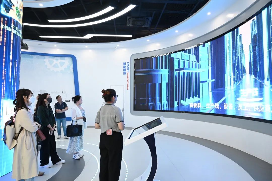 恒丰银行、媒体一行在副总工程师狄标锋的带领下参观了车间与展厅,实地考察了中辰股份在绿色制造、智慧制造上取得的成果。