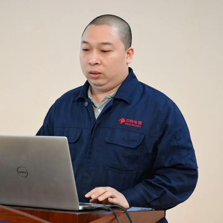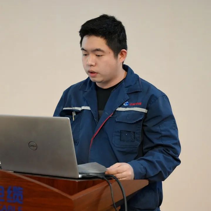 来自裸线厂的框绞机长钱江山分享了绞线导体的关键操作要领。作为一名95后小生,他充分发挥了机长的带头作用,带领机组成员共同学习最新理论知识并应用于实践操作,他所在的630/54框绞机班组多次被公司评选为先进机组。“看工艺、上单丝、拉牵引,模具、排线、穿线、档位,导体丝径、截面、电阻都要严谨检验审核。”要充分认识到人是治理机器的主体,在平时生产中,必须认真履行职责,严格遵守操作规程,确保产品的质量和安全性,只有精益求精,对生产过程中出现的问题进行冷静分析并及时处理,才能确保电缆的质量和使用寿命。