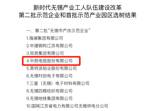 此外,日前无锡市产改办公布第二批“新时代无锡产业工人队伍建设改革示范企业”名单,中辰股份作为宜兴唯一一家企业成功入选。