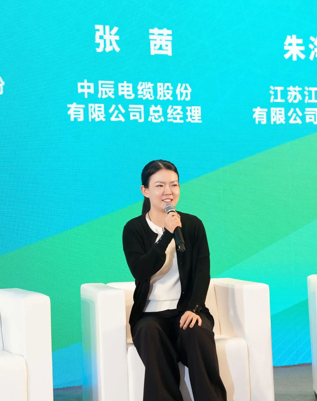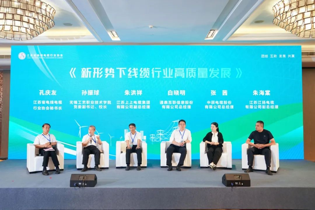 江苏省线缆行业高质量发展峰会圆桌对话环节,总经理张茜作为嘉宾分享了关于《新形势下线缆行业高质量发展》自己的见解与期许,她认为当前,高质量发展已成为国家经济发展的主旋律,线缆行业的高质量发展不仅仅体现在产品质量的提升上,更包括技术创新、品牌建设、市场拓展、人才培育、管理优化等多个方面,相信在行业协会的促进下,电线电缆行业也将凝心聚力、攻坚克难,在高质量发展上取得新突破。