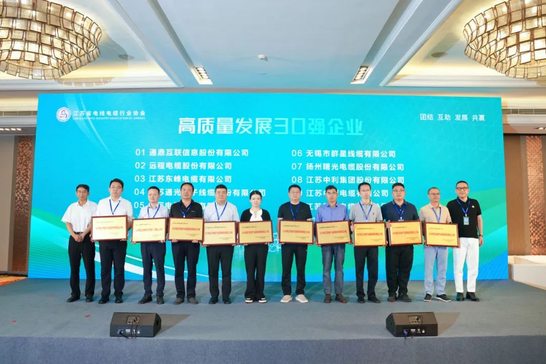 8月24日,江苏省线缆行业高质量发展峰会暨江苏省电线电缆行业协会会员代表大会在苏州市隆重召开,总经理张茜出席并参与《新形势下线缆行业高质量发展》圆桌对话,中辰电缆股份有限公司成功入选“2023年度江苏线缆产业高质量发展30强企业”。