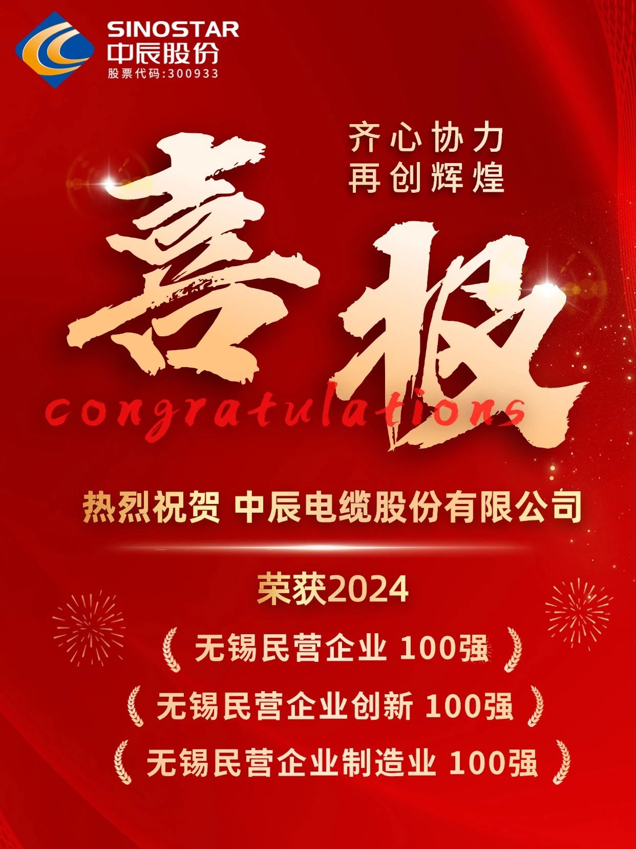 喜报丨中辰股份荣获3个百强!