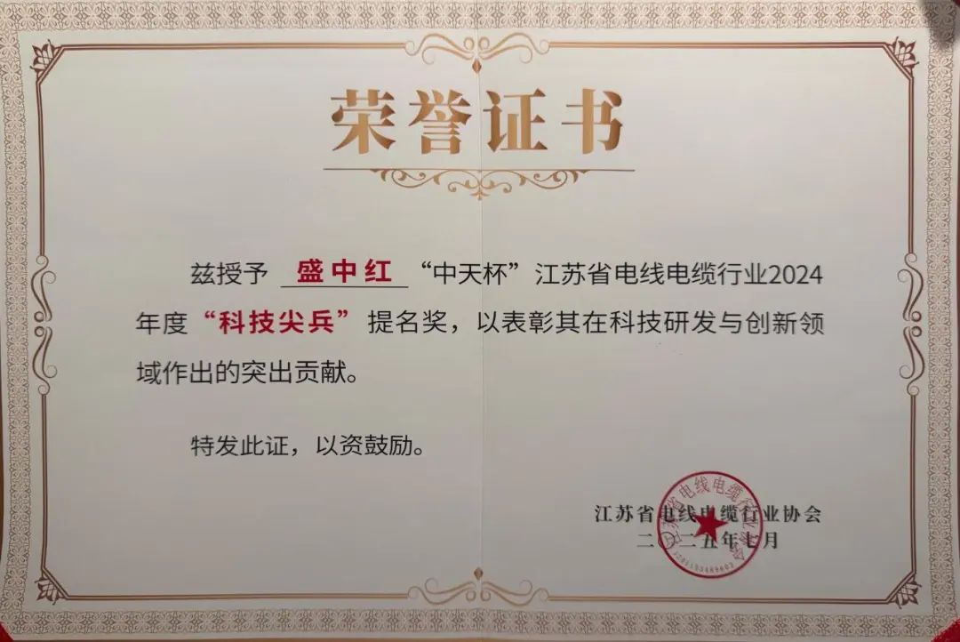 江苏省电线电缆行业2024年度“科技尖兵”提名奖